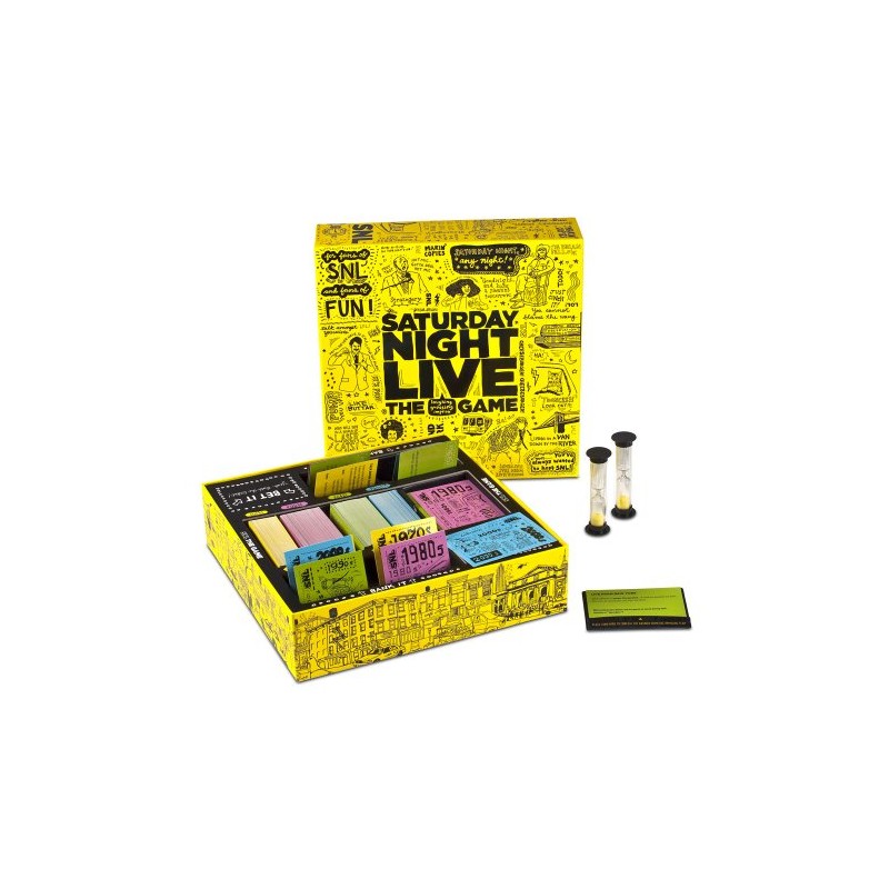 Saturday Night Live – The Game is the hilarious new party game featuring the best moments from Saturday Night Live packed into a mix of SNL-inspired activities that will get you and your friends acting, guessing, and laughing out loud. Customize the game and choose cards from the SNL eras you know best. With four unique era card packs (1970s, 1980s, 1990s, and 2000s)and a variety of activities, no two games are alike.