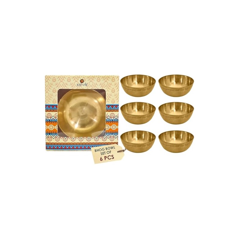 SATVIK Set of 6 Pure Brass Bhog Bowl Set for Pooja & Meditation | Indian Altar Supplies | Prasad Bowls for Diwali, Yoga, & Buddhist Offering | Durable & Decorative Brass Katori