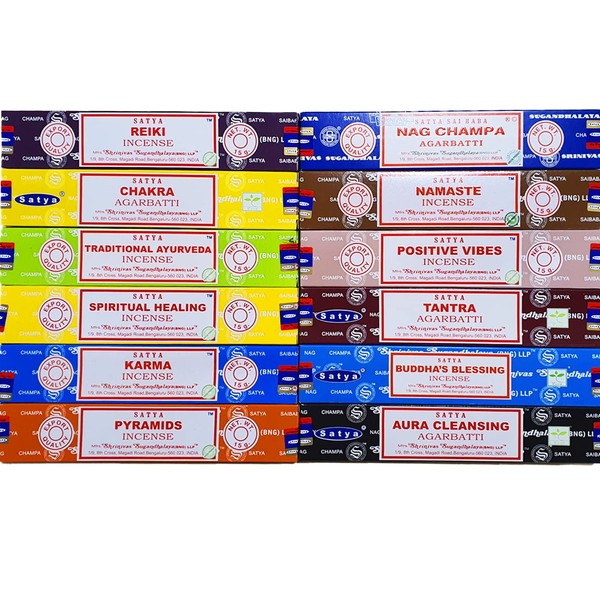 Satya Incense Sticks, Assorted 12 Fragrances (Pack of 3)