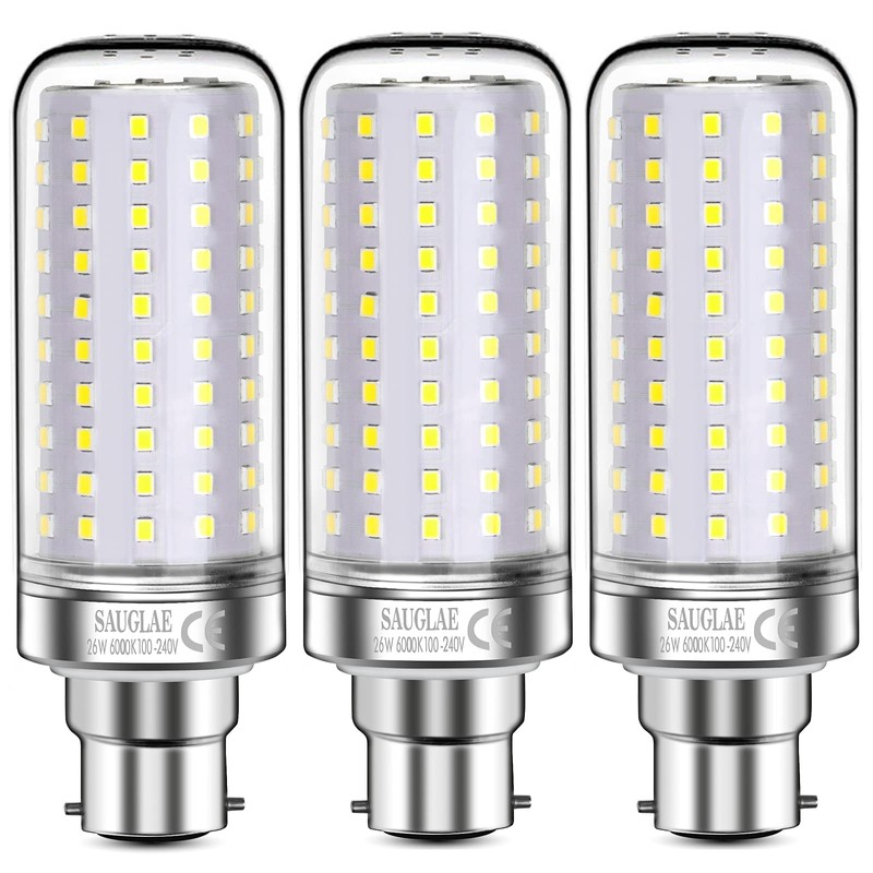 SAUGLAE SAUGLAE 26W LED lamps, 200W incandescent lamp equivalent, 6000K cool white, 3000Lm, B22 bayonet cap LED bulbs, 3 pieces
