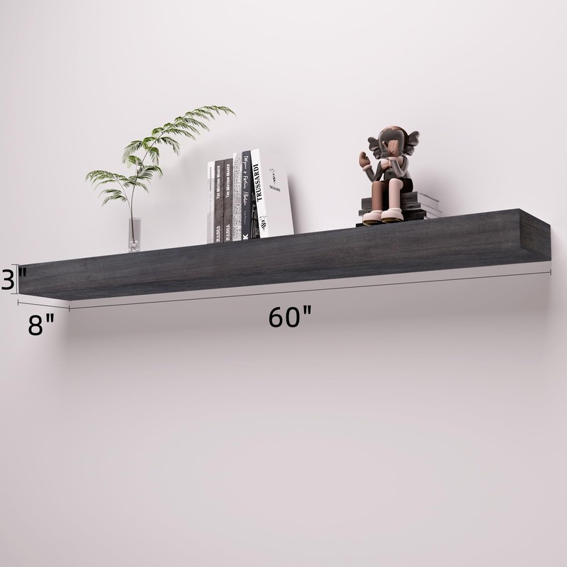 - Ample Display Space: Measuring 60 inches wide, 8 inches deep, and 3 inches high, this floating shelf offers an ideal platform to showcase your favorite decor pieces