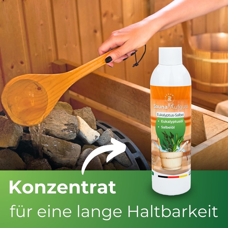 - Sauna and steam bath concentrate, free from emulsifiers, eucalyptus sage, 250 ml