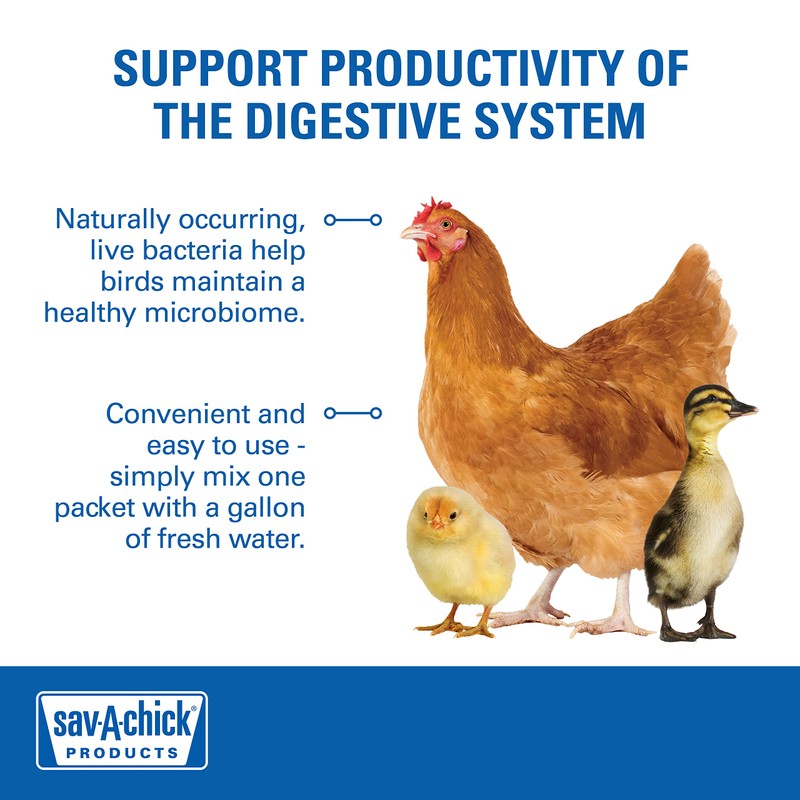 - Help give your girls a boost by using this supplement in combination with Sav-A-Chick Electrolyte & Vitamin Supplement.