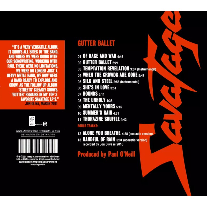 Savatage ~ Gutter Ballet (1989) CD 2011 Ear Music Germany •• NEW ••