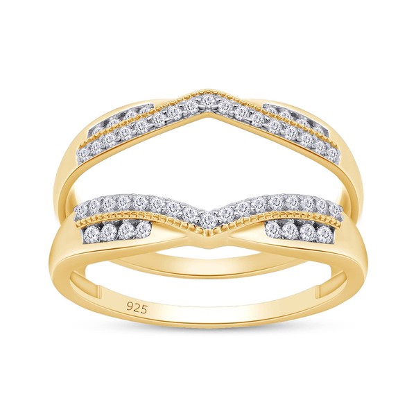 SAVEARTH DIAMONDS 1/3 ct t.w Round Cut Lab Created Moissanite Diamond Wedding Band Enhancer Guard Double Chevron Ring In 14K Yellow Gold Over Sterling Silver (D Color,VVS1 Clarity 0.33 Cttw)-5