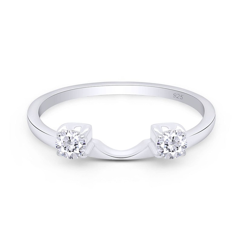 SAVEARTH DIAMONDS 1/5 Carat Round Cut Lab Created Moissanite Diamond Two Stone Enhancer Guard For Engagement Wedding Ring In 14K White Gold Plated 925 Sterling Silver (G-H, VVS1, 0.20 Cttw) Size- 6