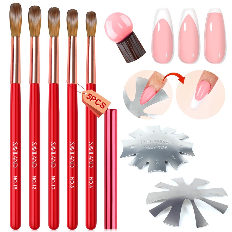 Saviland 5PCS Acrylic Nail Brush for Nails - Nail Brushes for Acrylic Application (Size 4/8/10/12/16),Oval Acrylic Powder Brush Set with French Cutters for Nail Extension & 3D Carving French Nails Art