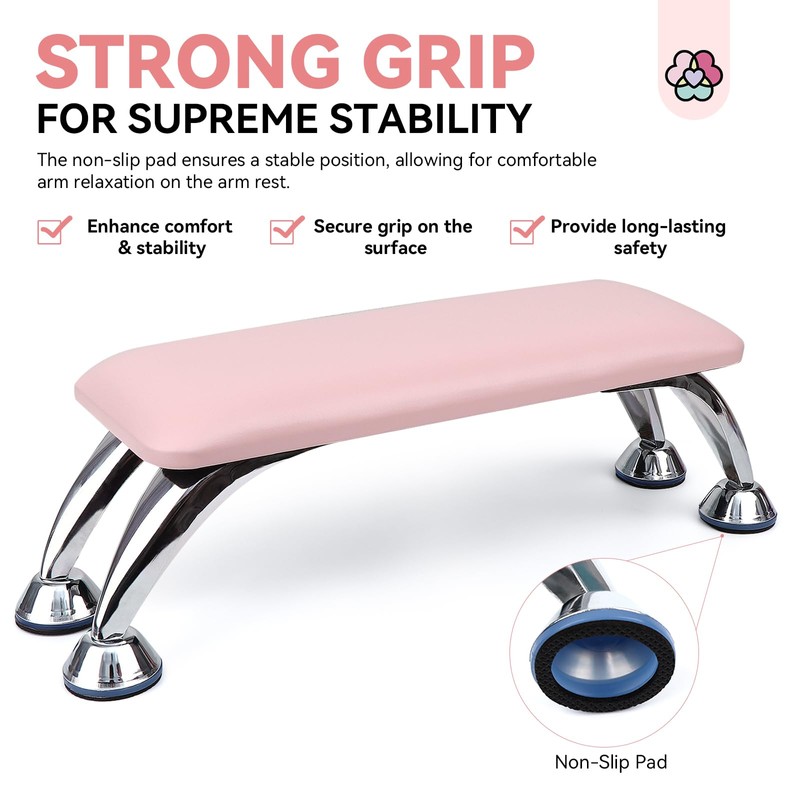 - 【Extra Large Arm Cushion】This arm rest is generously sized, providing ample space for comfortable positioning while accommodating larger nail lamps underneath for easy access during treatments. Versatile and sturdy, it can also support pedicure services. With non-slip pads on the legs, this arm rest offers stability you can count on.