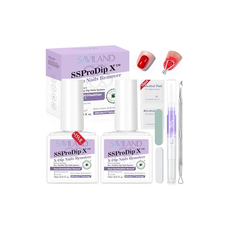 SAVILAND Dip Powder Remover Kit 2Pcs: 15ml Gentle & Safe Dip Nail Remover Wit...