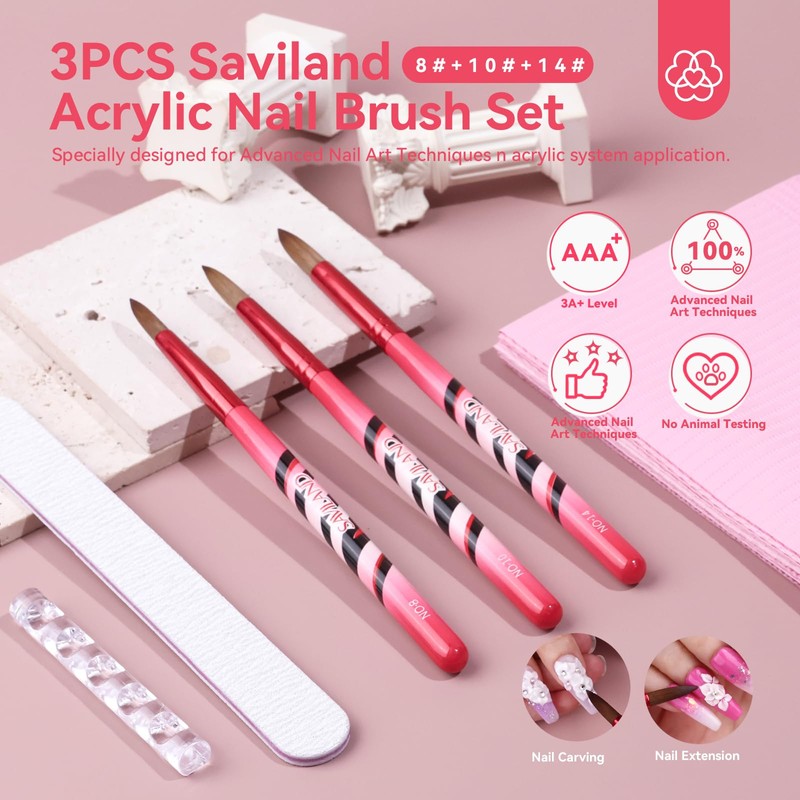 - Fashionable brushes in different sizes: Saviland acrylic nail brush set contains three pink zebra stripes, fashionable acrylic nail brushes in sizes 8#, 10#, and 14#. These different brush sizes offer versatility (8# suitable for 3D nail carving and 10# and 14# for nail art extension), so you can create a wide range of nail art styles with ease. Nail art not only makes your fingers beautiful, it also shows your feminine elegance and charm.