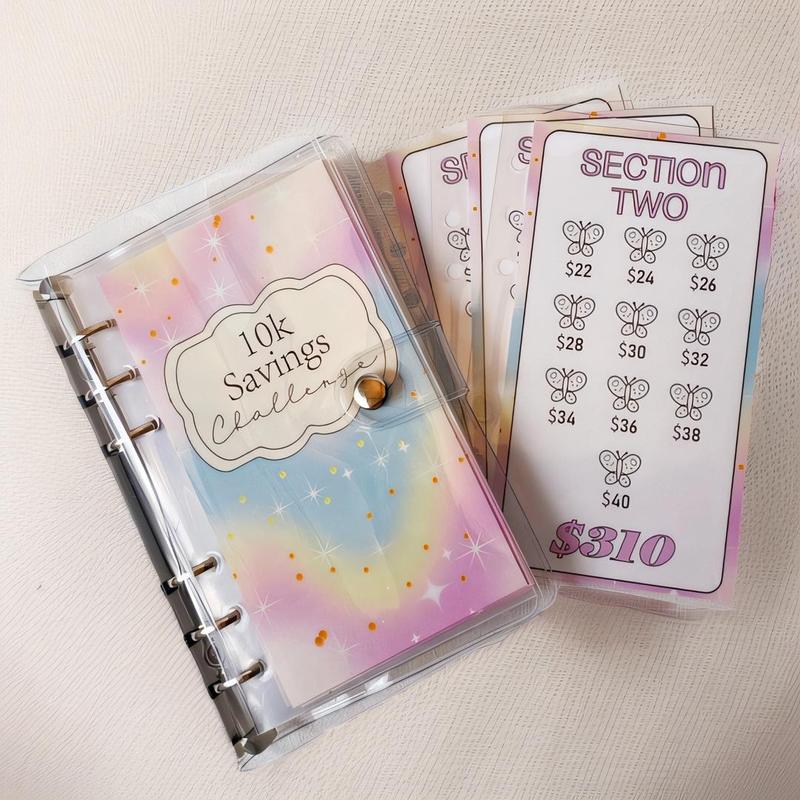 Savings Challenge Binder, 1 Count A6 10K Savings Binder, Saving Budget Planner, Money Saving Budget Binder for Home & School & Office, Office Accessories, Girly Office Supplies, Fall Decor