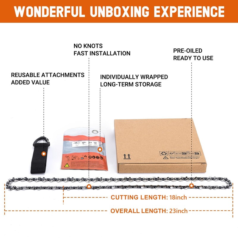 - 【High-Value Bundle】: Package includes: 1 x Chainsaw Chain, 1 x Heavy-Duty Hook-and-Loop Strap (15kg load capacity, ideal for securing tools and cable management).
