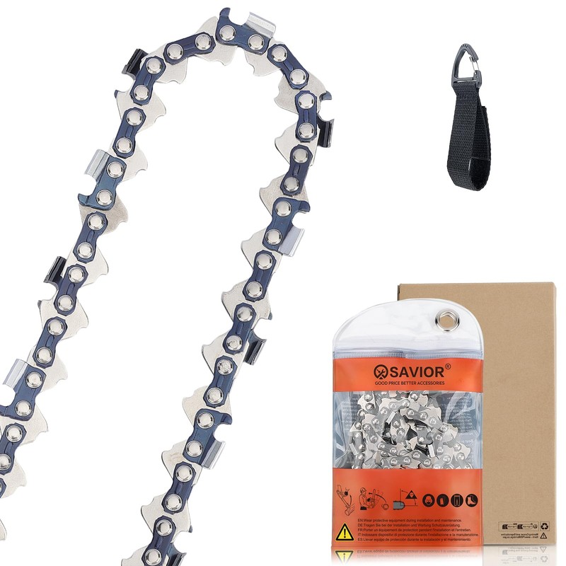 - 【18 Inch Savior Chainsaw Chain】: Semi-Chisel design with reinforced through heat treatment and quenching processes, delivering enhanced durability and higher resistance to breakage. Ideal for demanding tasks like hardwood and log cutting, while maintaining efficiency and safety.