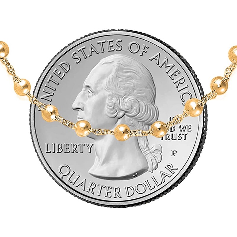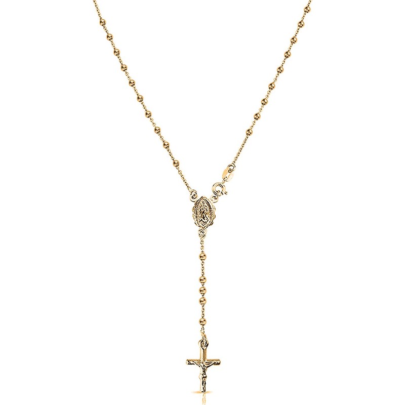 Savlano 925 Sterling Silver Italian Solid Bead Chain Cross & Rosary Virgin Mary Pendant -18K Gold Plated Y Necklace Comes With Gift Box for Women - Made in Italy (18, 3mm)