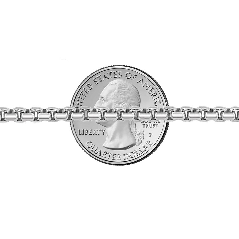 - This Solid 925 Solid Sterling Silver Rhodium Plated Round Box Chain Necklace will fit any style. All Savlano Sterling silver chains are Diamond cut for perfect shine and finish. It is made of solid 925 Sterling silver by best Italian jewelry masters. Very durable Lobster Claw clasp guarantees comfortable and safe wear.