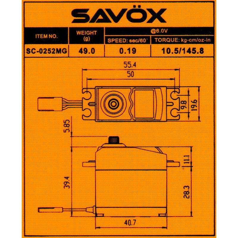 This is the Savox SC0252MG Metal Gear Digital Servo. Precision metal gears forms a strong and solid framework Strict production and quality control of plastic components ensures long life and durability Our servos are totally green – from materials to production, these servos are . Ideal for 30 size airplane or steering on 1/8th scale buggies.