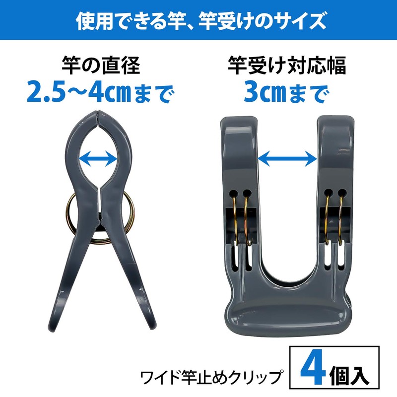 Sawafuji WS-04C Wide Rod Clip 4 Pieces Gray Width 3.0 x Thickness 2.5 x Height 5.0 inches (7.7 x 6.4 x 12.8 cm)