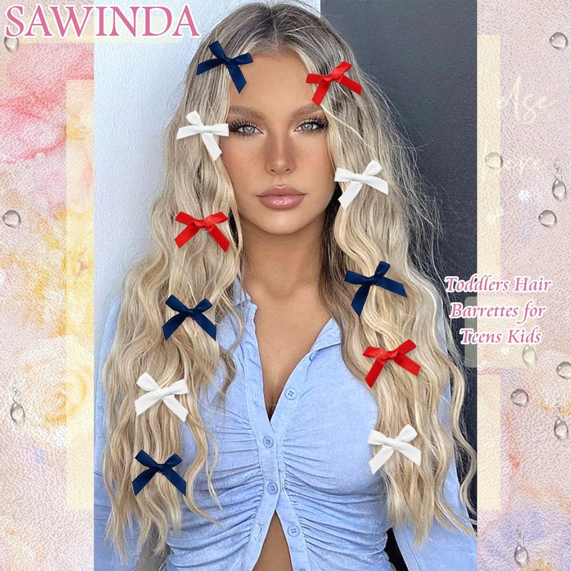 - Package Contents: This set includes 30 mini bow hair clips, 10 each in blue, red and white, which can be matched with your various hairstyles and clothes, and look more beautiful and charming.