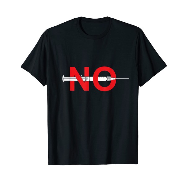 • This design was created in support to people who protest not only against obligatory vaccination, but also against soon to be mandatory Covid vaccine passports. It features the word NO in red crossed with a syringe.