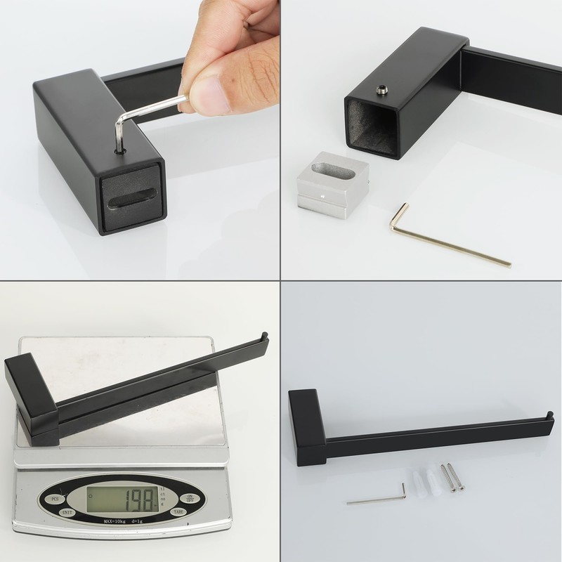 - SPACE SAVING- The compact body allows to install on the side of the vanity, bathroom wall or under cabinets. The hook at the end prevent the roll paper or towel from falling off.