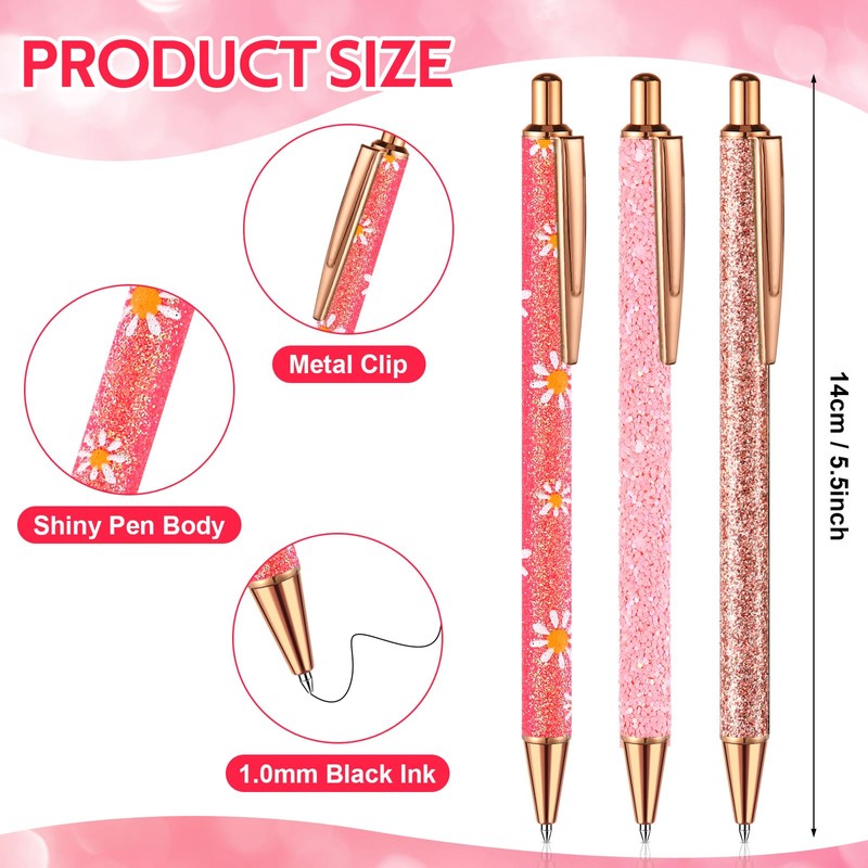 - Quality Material: our glitter pen range is made of stainless steel and metal, which ensures durability and longevity; They are not easy to deform or break and equipped with smooth 1.0 mm black ink, which can provide a pleasant writing experience