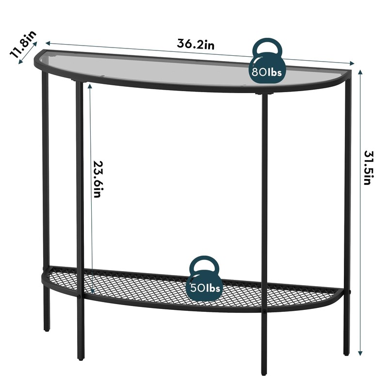 SAYGOER Glass Console Table 2 Tier Half Moon Entryway Table Modern Couch Table Small Entry Way Tables for Living Room Hallway, Easy Assembly, Gray Glass