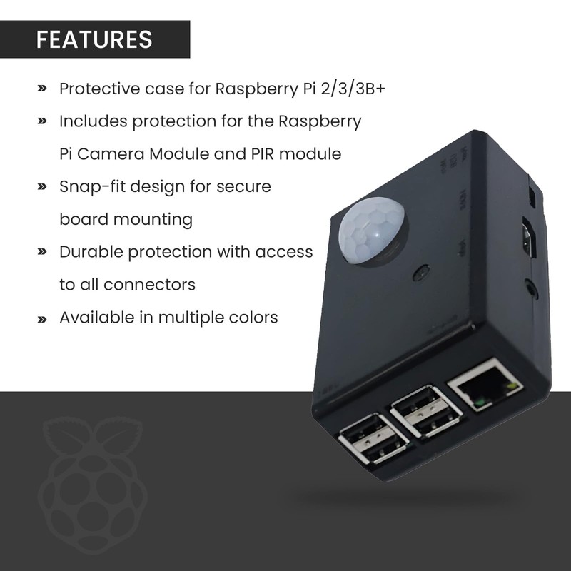 - It also protects Raspberry Pi Camera Module and PIR module.