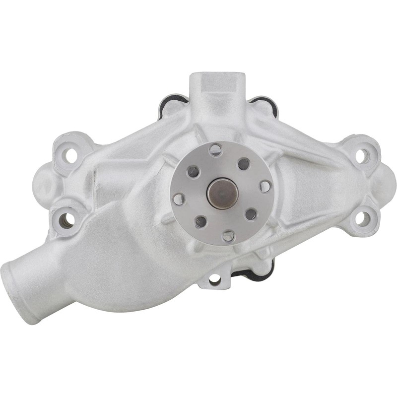 - This heavy duty aluminum water pump fits small block Compatible with Chevy engines and is short water pump length of 5-5/8"