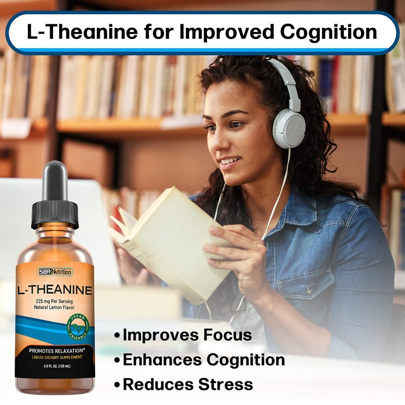 SBR Nutrition MAX Absorption Liquid L-Theanine Drops | All Natural, Vegan, Alcohol Free, Non-GMO | for Stress Relief, Relaxation, Focus Without Drowsiness | Synergistic with Coffee or Caffeine