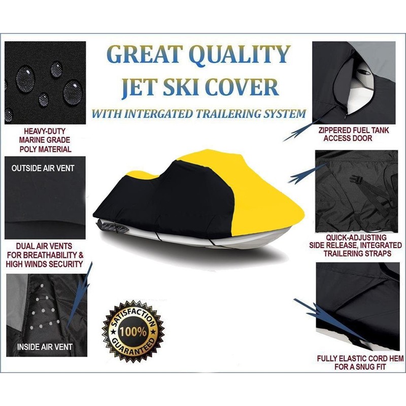 - Yellow / Black, Heavy-Duty, 600 Denier Jet Ski - PWC Cover fits Kawasaki STX 1100 1997-1999