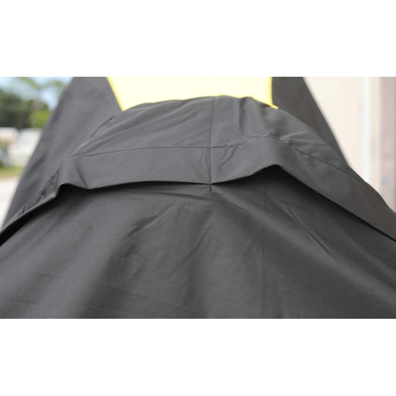 - Cover has Rear air vents reduce inside moisture and wind lofting. Elastic cord sewn into bottom hem for a fast, snug fit. COLOR: Black with Yellow.