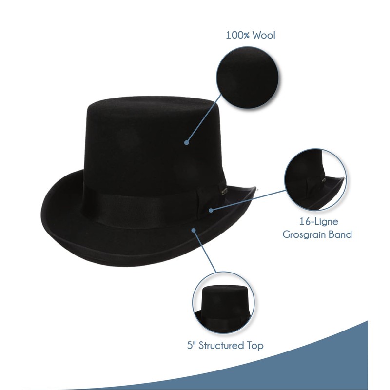 - WOOL FOR GENTLEMEN – Designed for style as much as for comfort, you can enjoy this classic top hat made from 100% wool felt. Add a touch of Victorian class to your event at the theater with felt that never felt so good.