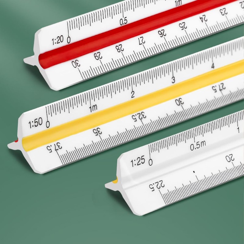 Scale Ruler, Plastic Triangular Scale, 30 cm Architecture Ruler, Triangular Ruler, Metric Scale Ruler (Scale 1:20, 1:25, 1:50, 1:75, 1:100, 1:125)