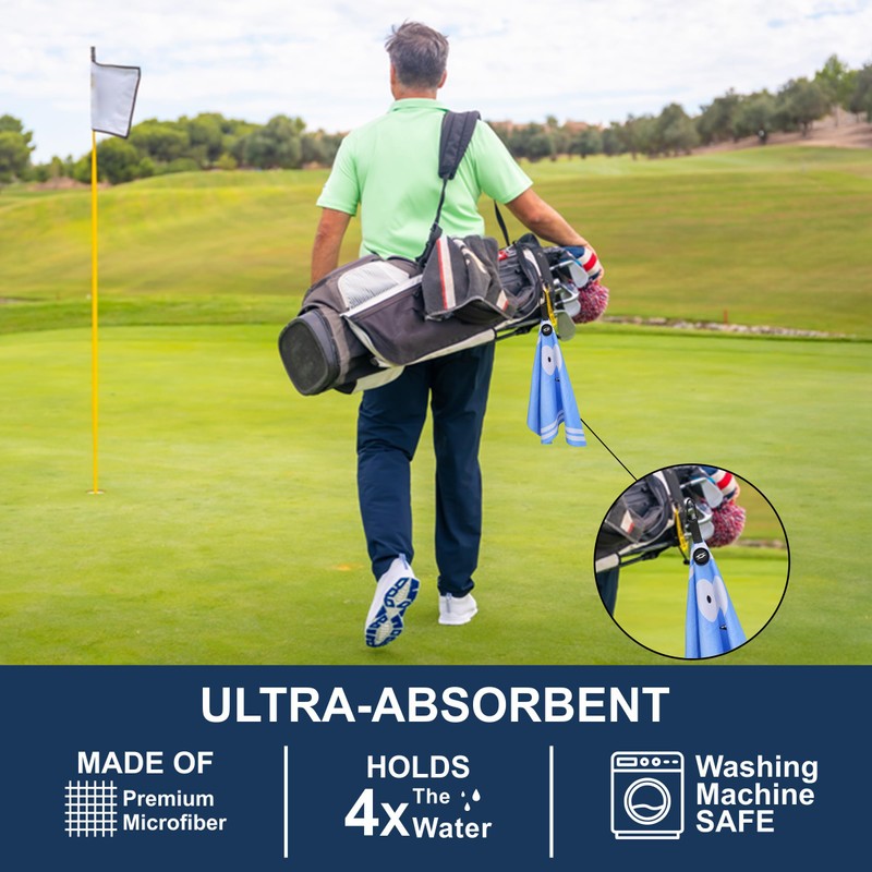 - Large 16"x24" Size: The generously sized waffle microfiber towel provides ample surface area to clean clubs, balls, and other golf gear. The waffle design allows you to clean into those groves on your club face and dimples on your golf balls to keep them clean and ready to make that next nice shot so you do not get a bogey while you play golf with your bros!