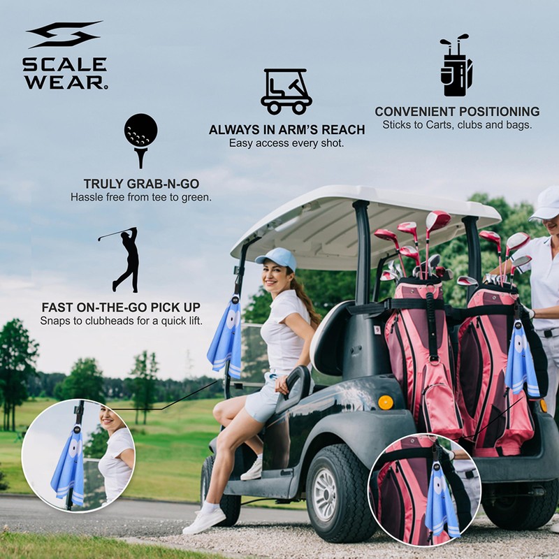 - Convenient Magnetic Towel Clip: Scale Wear Design waffle golf towel features a strong magnet with spring loaded screw on carabiner clip that securely attaches to golf bags or carts for easy access. Easy to take out with you and your bros to the green and easy pickup with your club when you touch the magnetic pickup feature on the towel.