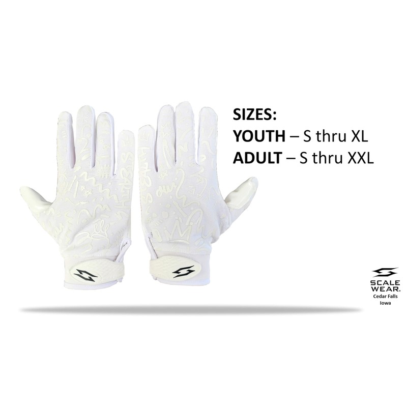 Scale Wear Design Stealth Beast Football Receiver Gloves - Tacky Sticky Grip Skin Tight Adult Pro Elite Super Performance Youth Man Boy Men Sizes (White - White, Youth - M)