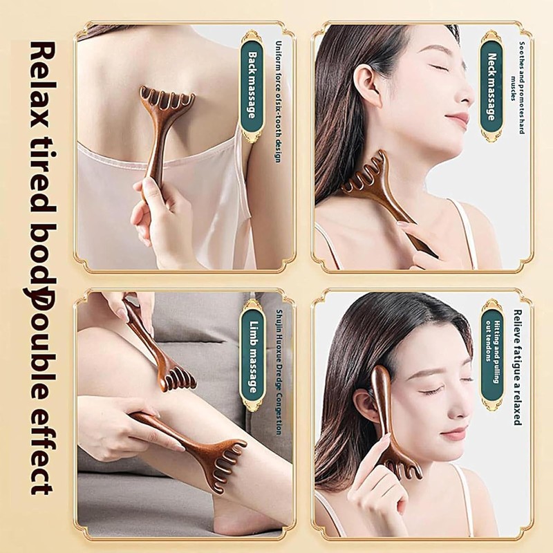 - Multiple Benefits for Body and Mind The scalp massage comb wooden comb is not only ideal for the head, but also can massage the neck, shoulders and back. The massage effect improves blood circulation, reduces stress and detoxifies your body. An ideal tool for men and women of all ages.
