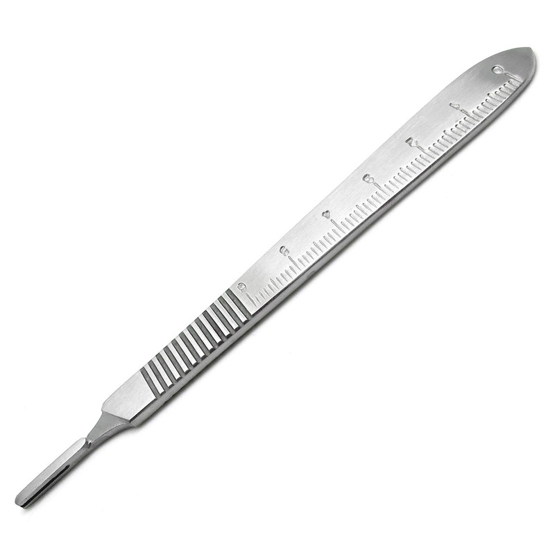 3 Pieces of Standard Scalpel Graduated Handle No. 3: Overall Length 5", New Weight of Instrument 0.71 oz. Ruler on one side of Handle Range 0cm-6cm. Horizontal 11 Lined Serrated Professional Grip on Both sides. Surgical scalpels are amongst the most important instruments which are used by all doctors in the field of medicine irrespective of which division they work in. Standard No. 3 Handle is provide additional reach and depth of surgical fields. The Professional Range of blades and handles are produced with Craft 'Professionals' and enthusiasts in mind.