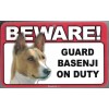 SCANDICAL BEWARE GUARD BASENJI DOG ON DUTY 5" X 8" HANGABLE PLASTIC SIGN NEW