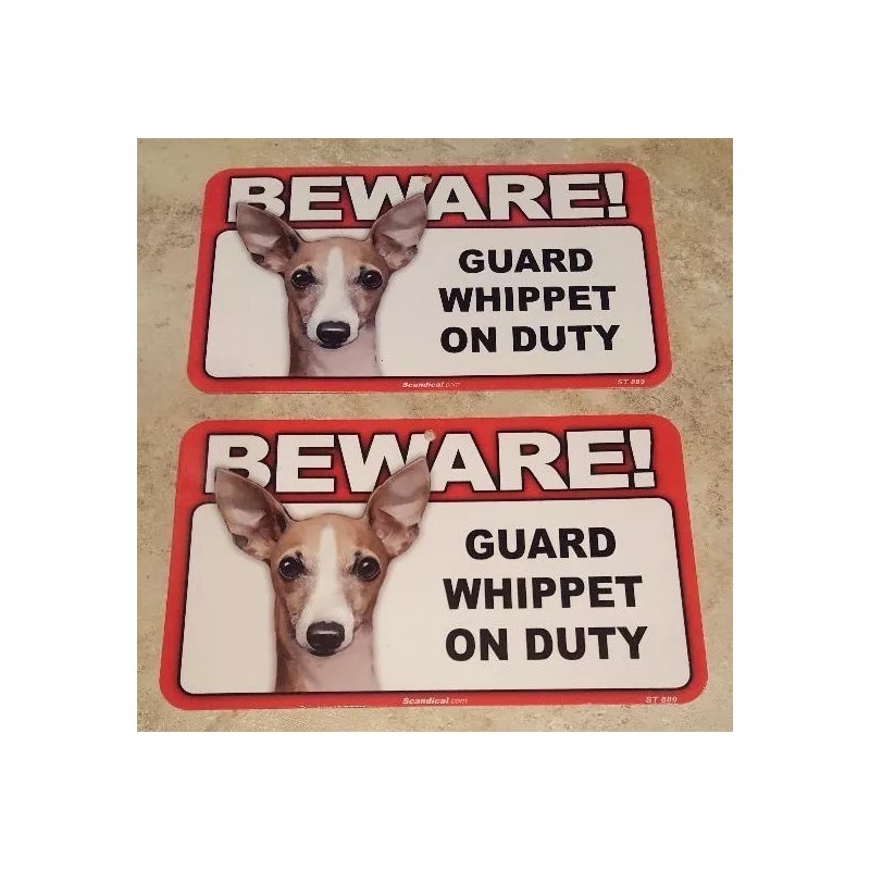 Scandical BEWARE Guard Dog on Duty Sign - Whippet Plastic Sign Lot of 2