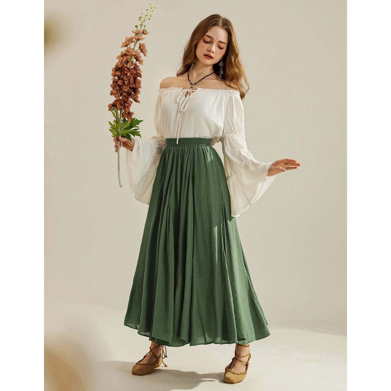Scarlet Darkness Women Casual Maxi Skirt Flowy Bohemian Renaissance Long Skirts Olive Green S