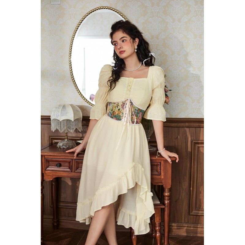 Scarlet Darkness Women's Corset Waist Belts Floral Lace Up Renaissance Corset Waist Belt Apricot 6