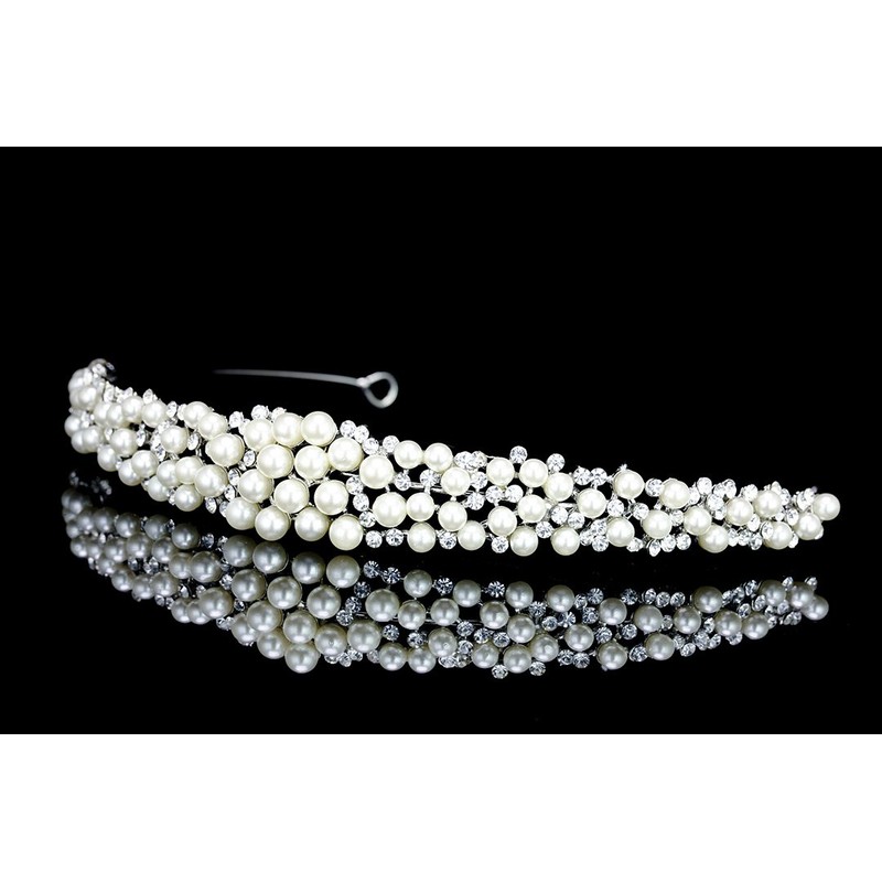 Scatter Faux Pearl Rhinestone Crystal Bridal Headband Tiara T1034