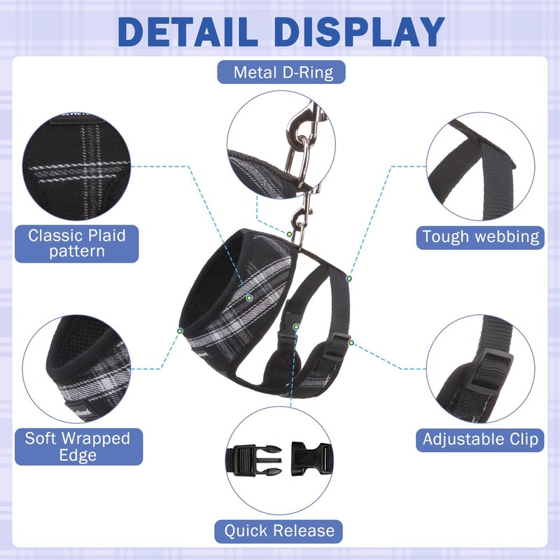 - CLASSIC PLAID VALUE 3-PIECE SET: Design-filled dog collar, vest harness and leash set for all your needs! The dog leash can be used with pet leash and pet collar. Wearing this chic set for male and female dogs at weddings, New Year's, birthday and holiday gifts, party dress-up, Christmas, photo shoots and family picnics will make your dog look very charming and stylish.