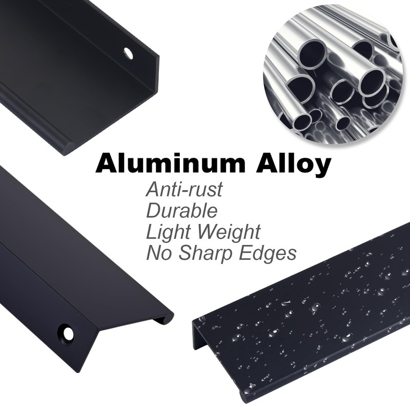 • Material: Our finger edge pulls are made of superior aluminium material, light weight with strong quality. They are water-resistant and anti-rust with a long service life. Thick and round edges eliminate sharp corners and reduce the risk of injury.