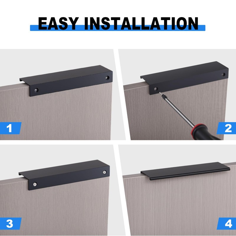 • Easy Installation: 10 pack Finger Edge Tab Pull Handles,Screws,Simple to install, providing a quick upgrade for your kitchen cabinets.