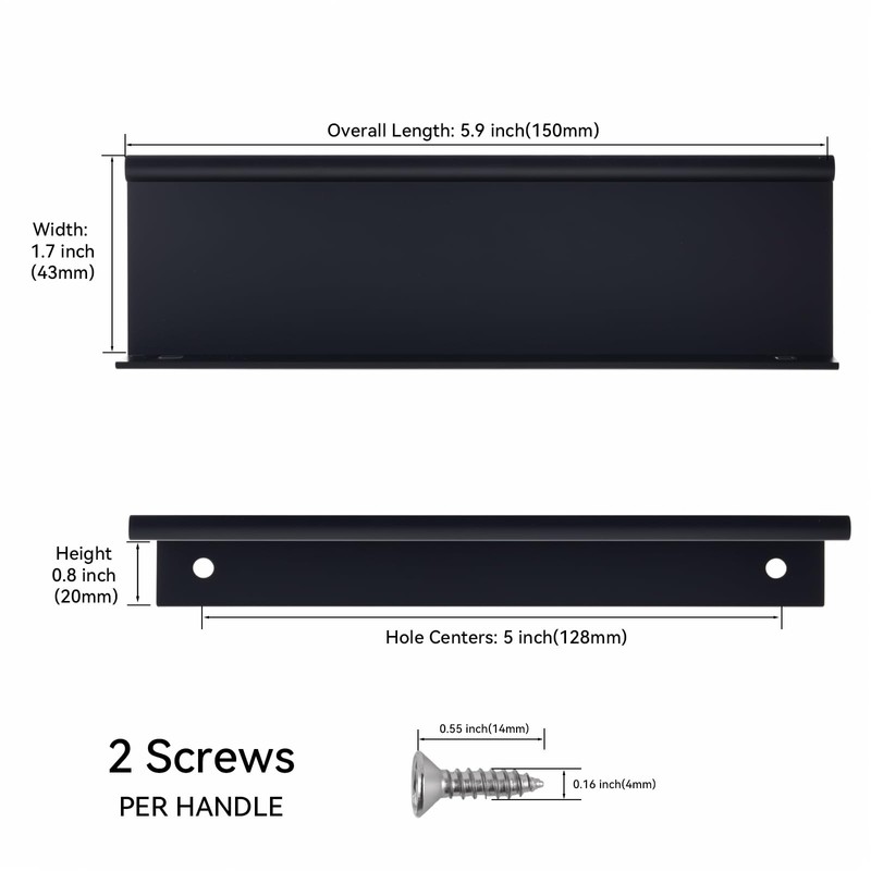 • Dimension: Overall length 5.9 inch (150mm); Hole centers: 5 inch(128mm). Height: 20mm(4/5inch); Width: 43mm(1.7 inch). Measure the distance between the centers of the two installation holes, not edges of the holes.