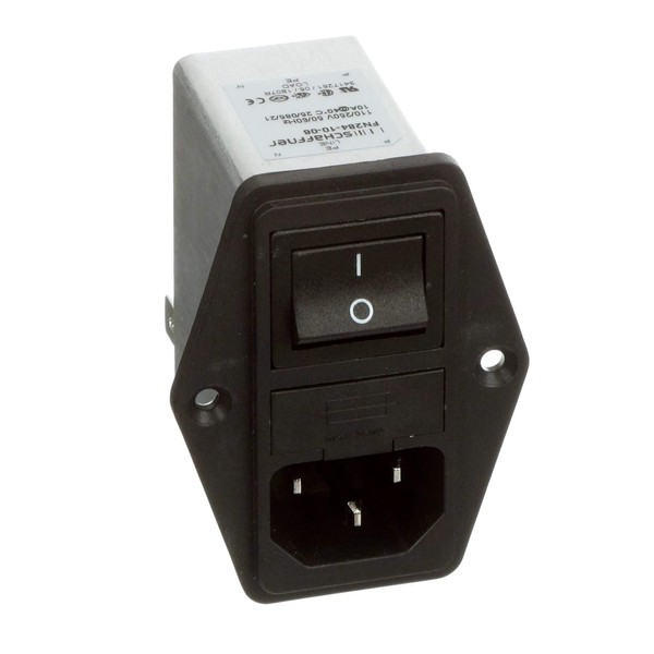 Schaffner, FN284-10-06, IEC Inlet Filter Switch & Dual Fuse 250VAC, 10A, Flange Mounting Left/Right