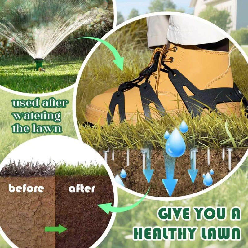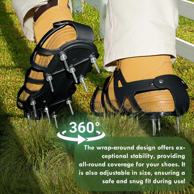 - Various Occasions: Lawn aerator spike shoes offer a more economical solution for gardens, yards, patios, grass, lawns, golf courses, and even wet paint surfaces. These aerator shoes—with their bottom spikes—help enhance your lawn’s appearance simply by walking on it.