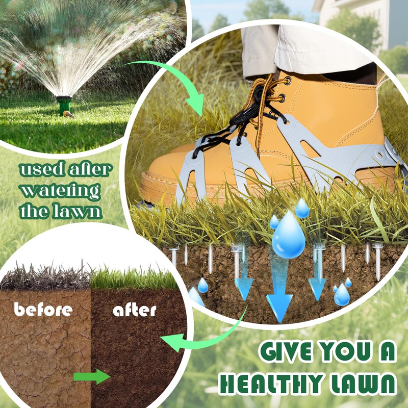 - Various Occasions: Lawn aerator spike shoes offer a more economical solution for gardens, yards, patios, grass, lawns, golf courses, and even wet paint surfaces. These aerator shoes—with their bottom spikes—help enhance your lawn’s appearance simply by walking on it.